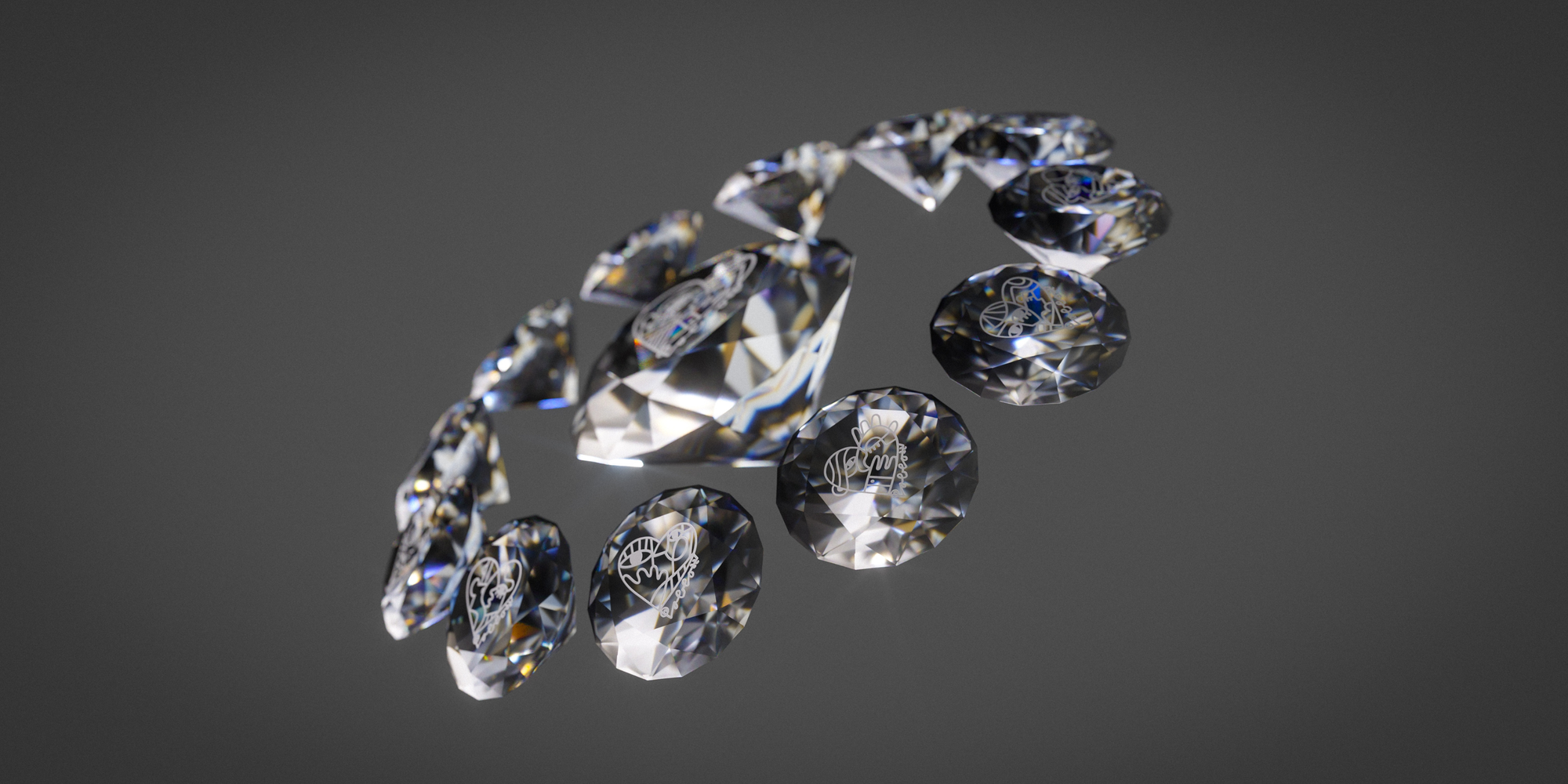 Commissioned by GASSAN, I translated Dreamscript into a hidden universe, 13 laser-engraved diamonds, each carrying a unique heart and a different love story. Created on the smallest canvas imaginable, the work lives as a quiet secret: something you don’t see at first, but always feel.